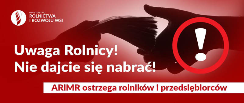 Podkreślamy, że Agencja Restrukturyzacji i Modernizacji Rolnictwa uruchamiając jakikolwiek mechanizm pomocowy NIGDY nie żąda wpłacenia pieniędzy czy to osobiście, czy za pośrednictwem np. kuriera. Wystarczy złożyć w odpowiednim terminie wniosek o przyznanie pomocy wraz z niezbędnymi załącznikami i zaczekać na jego rozpatrzenie.