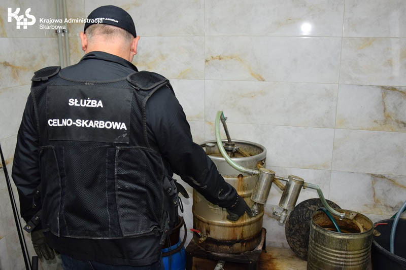 - Właściciel posesji usłyszał zarzut nielegalnej produkcji alkoholu. Grozi mu za to kara do 2 lat pozbawienia wolności, kara grzywny lub obie kary łącznie - poinformowała KAS.