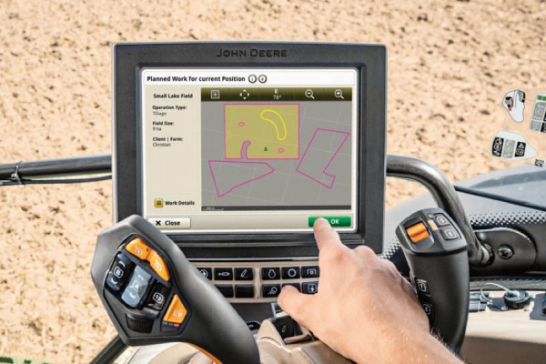 Plan prac możemy spokojnie przygotować jeszcze przed wyruszeniem w pole. W systemie John Deere Operations Center ustalamy zadanie i przesyłamy je bezprzewodowo do maszyny podłączonej do systemu poprzez JDLink.