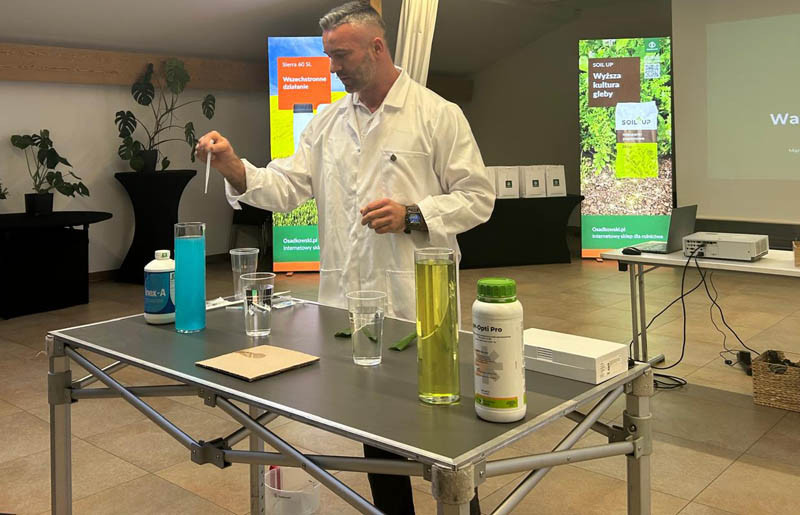 Zwieńczeniem wydarzenia były warsztaty prowadzone przez Tomasza Kaźmierczaka, managera ds. rozwoju produktu, poświęcone poprawie parametrów cieczy roboczej. Skupiono się na skuteczności rozwiązań takich jak Inex-A oraz nowości w ofercie firmy Osadkowski – PH Opti Pro, który zmniejsza pH cieczy roboczej i ogranicza twardość wody.