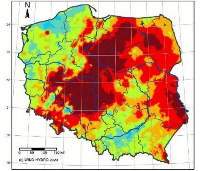 Jak informują Wody Polskie, po ostatnich opadach wilgotność gleby na głębokości do 1m w porównaniu z okresem z początku roku uległa poprawie. Jedynie w południowej części województwa wielkopolskiego oraz północnych obszarach województw śląskiego i opolskiego wykazują jeszcze deficyty wilgoci w strefie korzeniowej (wilgotność gleb sięga tam jedynie 45-35 %).