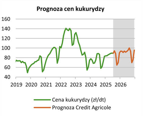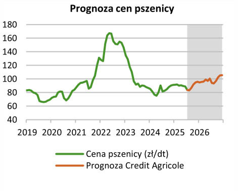 - Duża dostępność zbóż w sezonie 25/26 ogranicza naszym zdaniem przestrzeń do wzrostu ich cen w kolejnych kwartałach. Uważamy, że odbicie cen może pojawić się dopiero w kolejnym sezonie. Uwzględniając czynniki krajowe prognozujemy, że ceny pszenicy i kukurydzy w Polsce wyniosą odpowiednio ok. 95 zł/dt i 90 zł/dt na koniec 2025 r. i ok. 105 zł/dt i 95 zł/dt na koniec 2026 r. - poinformowali analitycy rynkowi Banku Credit Agricole. -Głównymi czynnikami ryzyka dla naszej prognozy są warunki agrometeorologiczne wśród kluczowych światowych producentów i eksporterów zbóż, kolejne szacunki światowej produkcji zbóż w sezonie 25/26, a także dalszy rozwój sytuacji geopolitycznej.