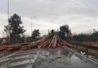 Kłody drewna spadły na drogę i samochody - ZDJĘCIA