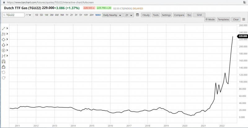 Niezbędnym składnikiem do wytwarzania nawozów jest gaz ziemny, który jest znacznie droższy niż nawet miesiąc temu. Dzisiaj ceny gazu na giełdach sięgnęły nawet kwoty 250 € / MWh (w czerwcu 140 € / MWh) , przeciętnie kształtując się na poziomie - 233 € / MWh. Podwyżka cen gazu na giełdach w ciągu 5 ostatnich dni sięgnęła prawie 23%, a w porównaniu z rokiem ubiegłym cena gazu jest kilkukrotnie wyższa.