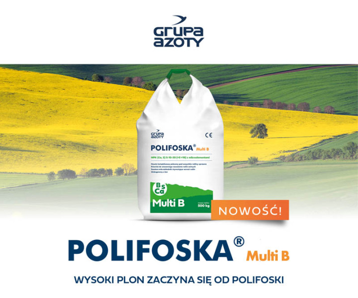 - W ostatnim czasie Grupa Azoty zaproponowała kilka ciekawych produktów, które zapewniają rolnikom efektywne plony. Tym razem na rynek trafia POLIFOSKA Multi B. Jest ona przeznaczona do stosowania przedsiewnego we wszystkich uprawach rolniczych, warzywniczych, sadowniczych oraz na użytkach zielonych. Sprawdzi się na wszystkich rodzajach gleb, niezależnie od ich odczynu i zwięzłości. Szczególnie polecana jest w przypadku gleb ubogich w potas, w warunkach niskiego nawożenia organicznego oraz pod rośliny potasolubne, takie jak: burak cukrowy, ziemniak, kukurydza i rzepak, a także pod zboża, gdy zbierana jest słoma – mówi Dyrektor Departamentu Korporacyjnego Handlu Segmentu AGRO w Grupie Azoty Jacek Zaborowski.