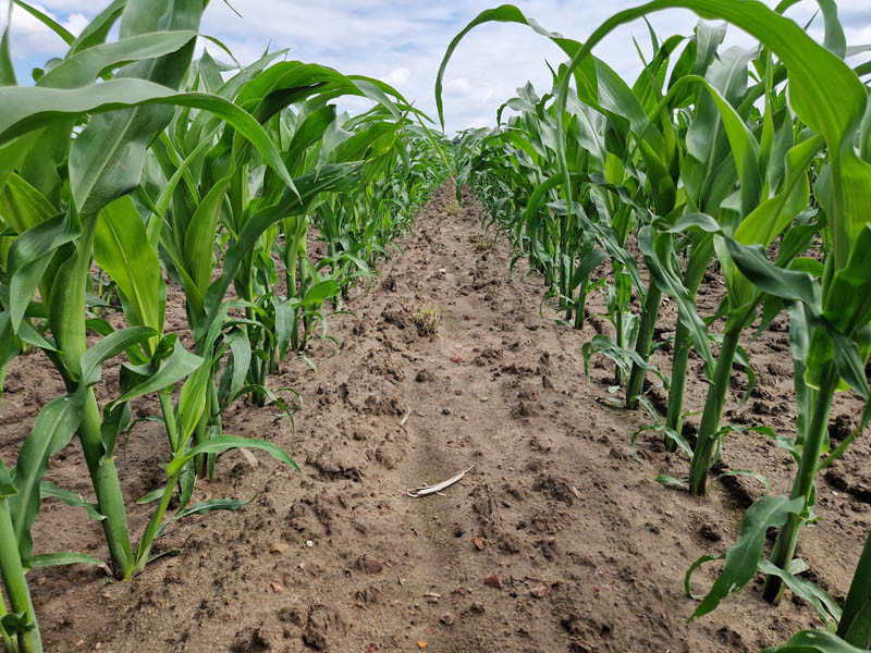 Na terenach, gdzie kukurydza musiała borykać się ze stresami, takimi jak wahania temperatur czy złe stosunki powietrzno-wodne, często wschody były niewyrównane. Niektóre rośliny znajdowały się w fazie 5-6 liścia, a inne w tym samym rzędzie dopiero wschodziły. Wpłynęło to również na brak wyrównania w kwitnieniu kukurydzy, który możemy obecnie zaobserwować. Niestety będzie miało to również wpływ na równomierność dojrzewania kukurydzy. Ogólnie rośliny „wyrzuciły” już wiechę, co świadczy o tym, że zakończyły wzrost i teraz „skupiają” się na rozwoju części generatywnych. Jest to newralgiczny czas zapylania, od którego będzie zależeć ilość ziarniaków w kolbie.