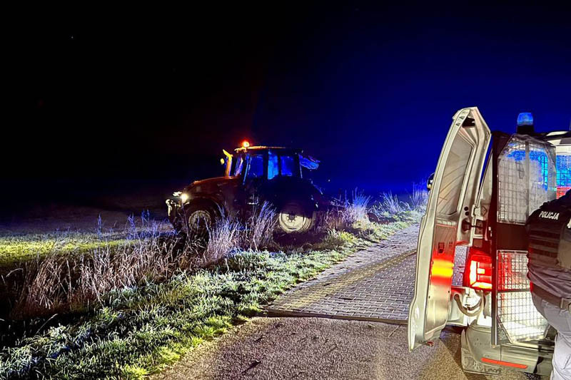 - Mundurowi zorganizowali blokady, na jednej z nich kierowca ciągnika próbował ją ominąć, stracił panowanie nad pojazdem i wjechał do rowu. Kierowca został zatrzymany. 44- latek miał prawie promil alkoholu w organizmie, nie miał też uprawnień do kierowania - informują chojniccy policjanci.