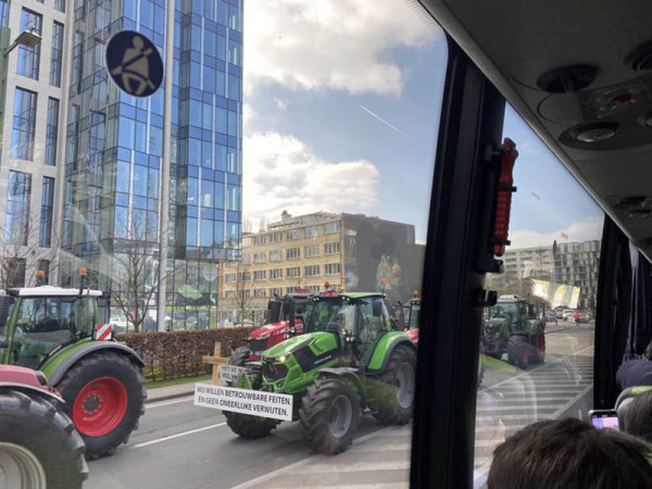 - Około 2500 traktorów wyruszyło w piątek rano do Brukseli, aby podjąć działania przeciwko polityce rolnej rządu . Traktory wjechały do Brukseli ze wszystkich prowincji flamandzkich pod eskortą policji drugorzędnymi drogami i planują masowo trąbić klaksonami o godzinie 11:30 - poinformowała angielskojęzyczna belgijska agencja Belga News Agency English