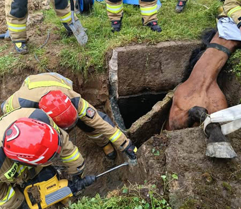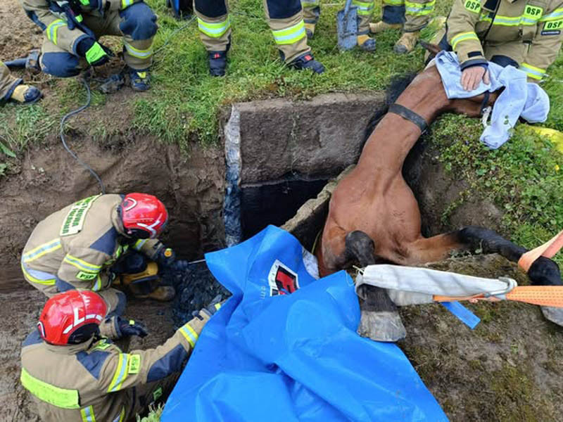 - Równocześnie z rozpoczęciem obchodów Dnia Strażaka w tut. Komendzie strażacy pełniący służbę w dniu 16 maja 2025 r. zostali zadysponowani do nietypowego zgłoszenia. Do podziemnego zniornika wpadł koń, który nie mógł się wydostać o własnych siłach - poinformowali w mediach społecznościowych strażacy ze Strzyżowa.