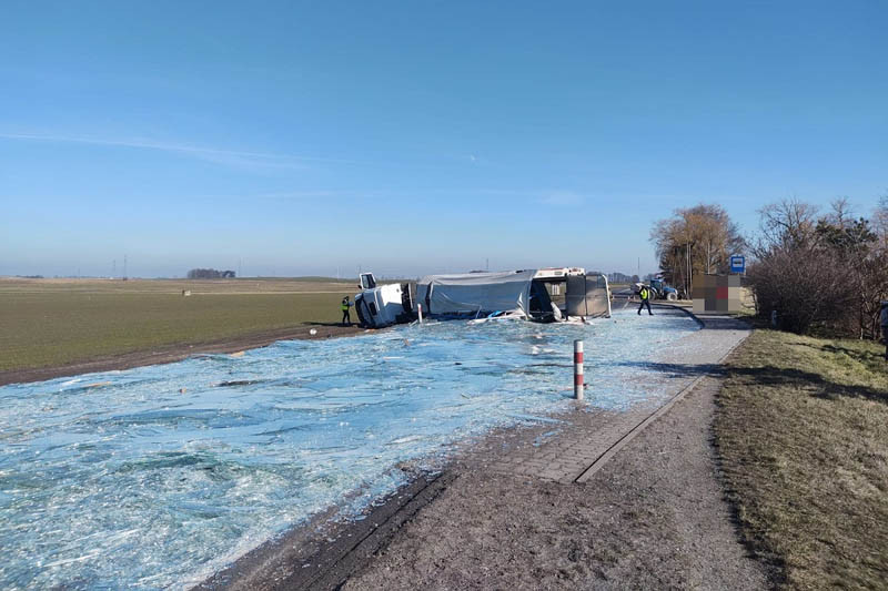 - Na miejscu wypadku pracowała policyjna drogówka oraz kryminalni i jak wynika z ich wstępnych ustaleń, kierujący ciągnikiem rolniczym, 22-letni mieszkaniec gminy Mrocza, nie upewnił się co do możliwości bezpiecznego wykonania skrętu w lewo, w wyniku czego, skręcając uderzył w wyprzedzające go iveco. TIR przewrócił się tamując krajową dziesiątkę, a przewożony ładunek szkła wypadł na trasę - poinformowała Komenda Powiatowa Policji w Nakle nad Notecią.