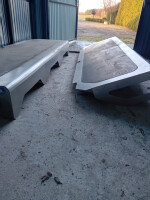 sprzedam dwa podesty z stali nierdzewnej dlugosc 240cm szer 80cm wys 30cm z guma antyposliz masywn ciezkie. cena za komplet waga jednego 70kg