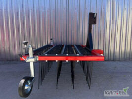 Brona aktywna o szerokości roboczej 4m. Agregat z zaczepem transportowym i wózkiem do przemieszczania się po drogach publicznych. Urządzenie rolnicze służące do spulchniania i wyrównywania gleby. Wido...