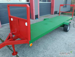 Sprzedam platformę dwu kołową, ciągnikową. Koła 15 cal, opony od samochodu dostawczego, podłoga z blachy stalowej 2,5 mm. dodatkowe 4 szt pałąki boczne (pręty stalowe wzdłużne Fi 16 mm zapobiegające w...