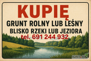 Kupię działkę rolną/leśną blisko jeziora lub rzeki 691 244 932 Całe Mazowieckie