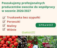 Poszukujemy profesjonalnych producentów owoców do współpracy – sezon 2026/2027 Jesteś doświadczonym producentem owoców? Stawiasz na jakość, terminowość i partnerskie relacje biznesowe? Dołąc...
