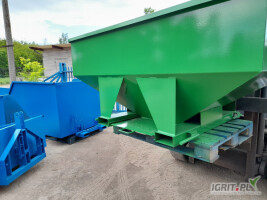 Kosz zasypowy workownica do wózka widłowego tura lub innego pojazdu jezdnego wyposażonego w widły. Służy do przesypania wszelkiego rodzaju zboża, warzyw i innych towarów sypkich takich jak kamień...
