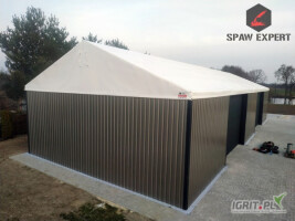 Hala namiotowa o wymiarach 10 m szerokości, 20 m długości i 4 m wysokości w ścianie bocznej, w której w skład wchodzi: - solidna konstrukcja STALOWA cynkowana ogniowo - Dokumentacja do celów proje...
