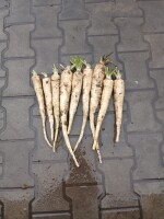 Pietruszka brudna kaliber handlowy jedna partia na tą chwilę z przechowalni ilość 1.5 tony a reszta około 3-4 ton w polu w kwietniu będzie kopana