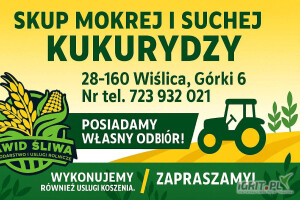 SKUP KUKURYDZY MOKREJ I SUCHEJ. ATRAKCYJNE CENY. SZYBKI ROZŁADUNEK. TERMINOWA PŁATNOŚĆ. USŁUGI:KOMBAJN+TRANSPORT. ZAPRASZMY.