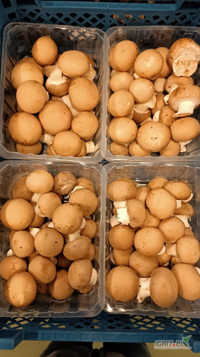 Posiadamy w sprzedaży pieczarki brązowe, różne asortymenty: PORTOBELLO 6-8, 2 kg lub tacka 500g, ŚREDNIE 4-6, 3 kg lub tacka 500g, tacka 250g. Możliwość transportu, zafoliowania tacki i spakowania w...