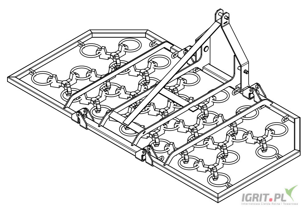 Solidne narzędzie do pielęgnacji łąk i pastwisk oraz przygotowania gleby pod siew. Skutecznie wyrównuje teren, rozbija grudy, usuwa resztki roślin i wspomaga kiełkowanie trawy.