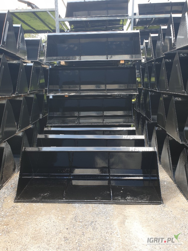 Łyżka MAGMA typu 1m ÷ 2,4 m to konstrukcja spawana przystosowana do prac związanych z załadunkiem, rozładunkiem i transportem materiałów sypkich takich jak: ziemia, kamienie, płody rolne, nawozy itp.