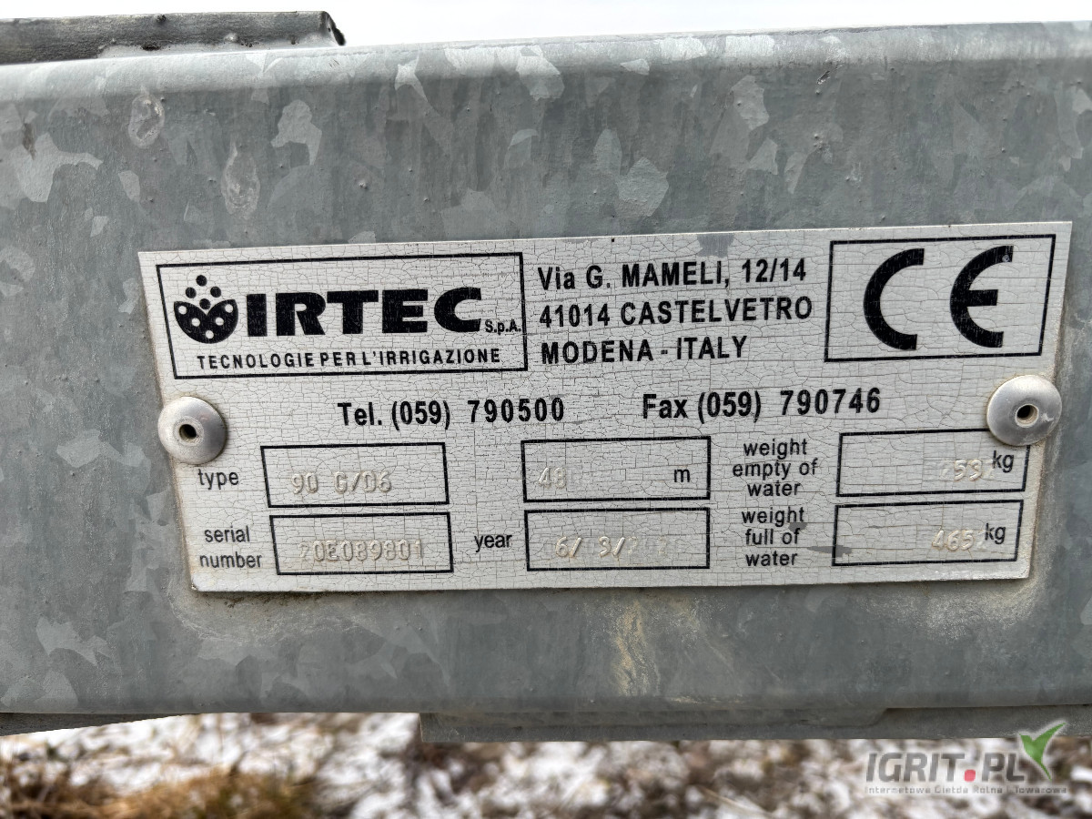 Na sprzedaż deszczownia szpulowa renomowanej włoskiej firmy IRTEC, model 90G/D6.