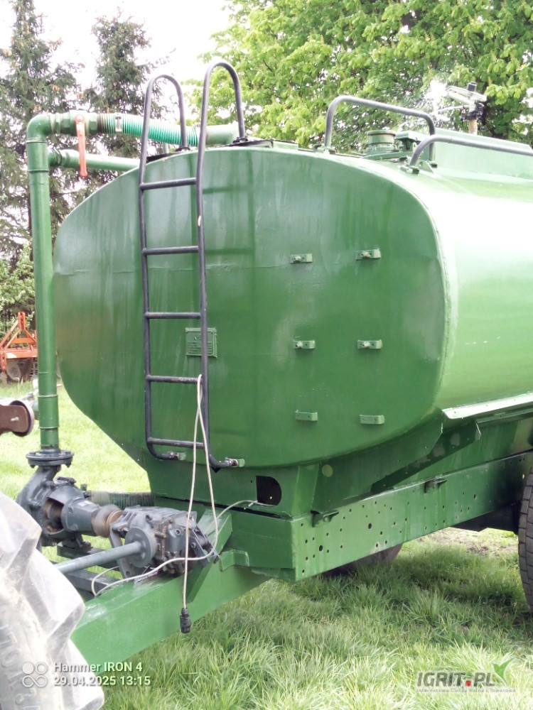 Sprzedam beczkę do podlewania - deszczownia 7500l z dwoma zraszaczami działka jak na deszczowni wykonana z solidnej nie pordzewiałej cysterny wojskowej. Beczka na ma możliwość zaciągania wody ze stawu , zbiornika lub można ją napełnić przez złącze hydrantowej. Pompa opróżniania beczkę w 10 minut napędzana z wom ciągnika . Można podlać za jednym przejazdem pas około 50 m. po 25 na jeden bok , rozstaw kół 150 cm. Mogę uruchomić na miejscu zapraszam.