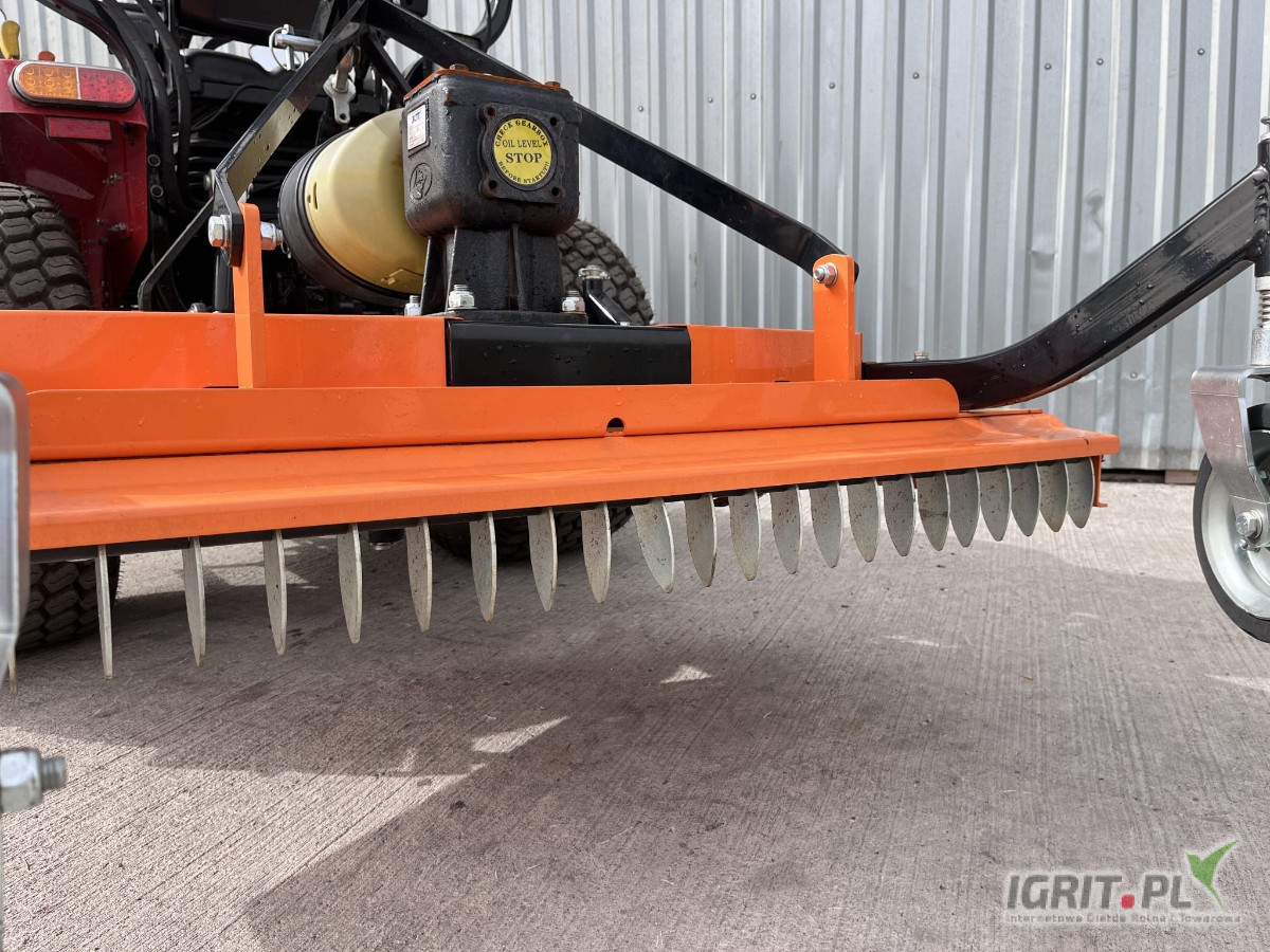 Kosiarka pielęgnacyjna FMN to solidne i precyzyjne rozwiązanie do koszenia dużych, zadbanych terenów zielonych – takich jak boiska, pola golfowe, parki czy gospodarstwa. Trzy wydajne noże zapewniają szybkie i równe koszenie, a cztery koła podporowe gwarantują łatwe manewrowanie i płynną regulację wysokości cięcia.