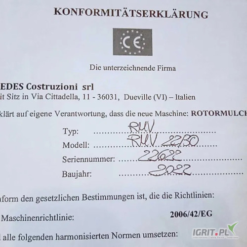 · Maszyna dostosowana do napędu WOM 540 obr/min