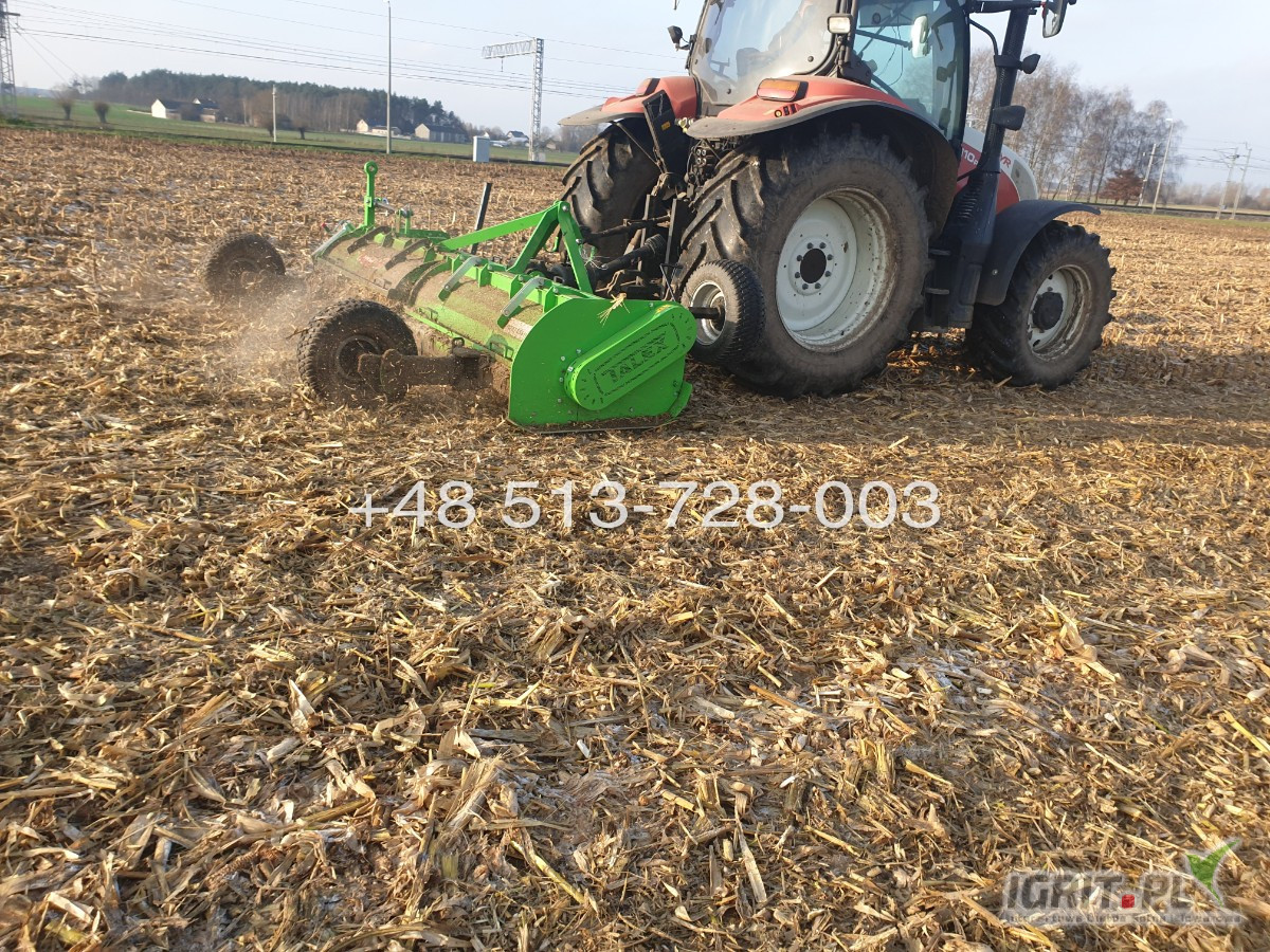 OpisRozdrabniacz HEAVY DUTY LEO 320 TALEX Professional napęd 2 strony młotki 1,6 kg Kosiarka bijakowa mulczer Wałek WOM 830 Nm ze sprzęgłem Gratis Maszyna idealnie sprawdzi się nawet w najcięższych warunkach. Model 320 został stworzony przede wszystkim do rozdrabniania słomy oraz innych resztek pożniwnych, łodyg kukurydzy czy słonecznika. KORPUS Wykonany z wysokiej jakości materiału Podwójnie wzmacniany Przekładnia kątowa z wolnym kołem System sprzęgieł CLAMPEX na obu kołach pasowych ZABEZPIECZENIA sprzęgło na wałku WOM pasy klinowe KURTYNA METALOWA Dodatkowo zabezpiecza przed wydostaniem się koszonej masy WAŁ ROBOCZY Wyważany elektrycznie Montowany na tulejach samocentrujących, które cechują się krótkim czasem montażu i umożliwiają przenoszenie wysokich momentów obrotowych KOŁA PASOWE napęd dwustronny 2x3 paski klinowe RAMA ZAWIESZENIA Dodatkowo wzmocniona, aby maszyna sprostała pracy w najcięższych warunkach POZYCJA TRANSPORTOWA Możliwość transportu wzdłuż- ułatwia transport maszyny na miejsce pracy. UCHYLNA KLAPA WYLOTOWA Pozwala na rozrzut skoszonej masy Zapobiega gromadzeniu się skoszonej masy w środku maszyny UZBROJENIE MASZYNY Młotki bijakowe RM1 ŚLIZGI wydłużają żywotność maszyny Możliwość szybkiej wymiany ślizgu Dodatkowa ochrona w przypadku najechania na przeszkodę PRZEKŁADANIA KĄTOWA Przekazująca napęd dwustronnie TYP Z086 szerokość robocza 3,2 m liczba bijaków 46 średnica wału roboczego 219 mm wydajność ok.2,5 ha/h obroty WOM 540 obr./min. zaczep KAT . II zapotrzebowanie mocy 120 KM masa 1400 kg Cena netto RATY Leasing Transport Niniejsze ogłoszenie jest wyłącznie informacją handlową i nie stanowi oferty w myśl art.66 &1. Kodeksu Cywilnego. Sprzedający nie odpowiada za ewentualne błędy lub nieaktualności ogłoszenia
