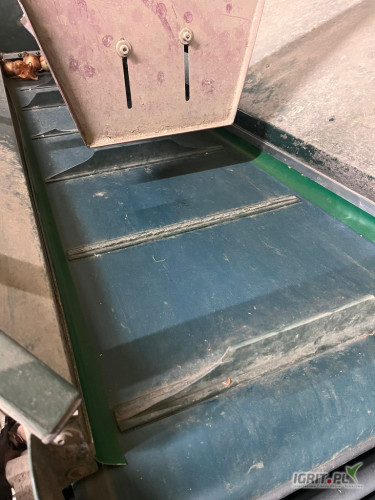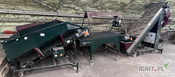 OpisLinia do apkowania cebuli składająca się z kosza zasypowego, stołu rolkowego oraz wagopakowarki. Do wymiany taśmociąg widoczny na zdjęciu.