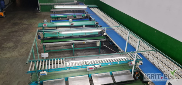 - Sorter optyczny 4 rzędowy Rozmiar, Kolor, Uszkodzenia, z możliwością sortowania na 9 wyjść. Zajęte 6 wyjść owoców.