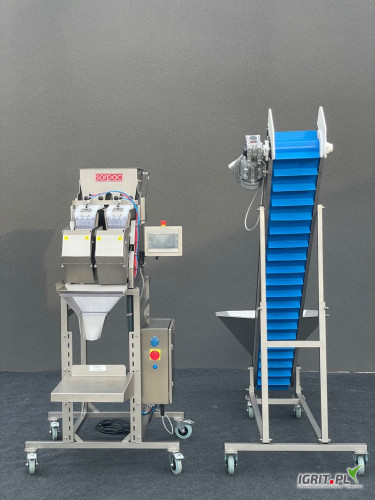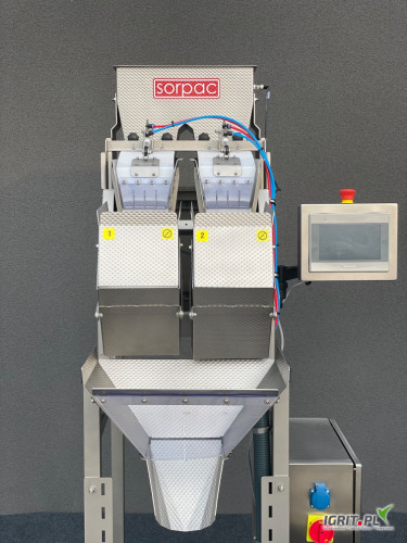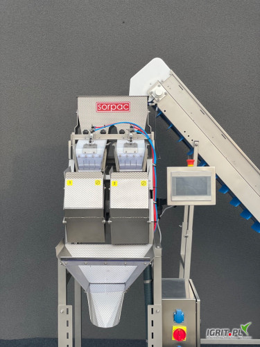OpisSprzedam wagoworkownicę firmy SORPAC do bobu, brukselki, fasoli, frytek, mrożonek. Maszyna składa się z wagi na wibracjach i taśmociągu załadowczego. Wykonana jest ze stali kwasoodpornej.