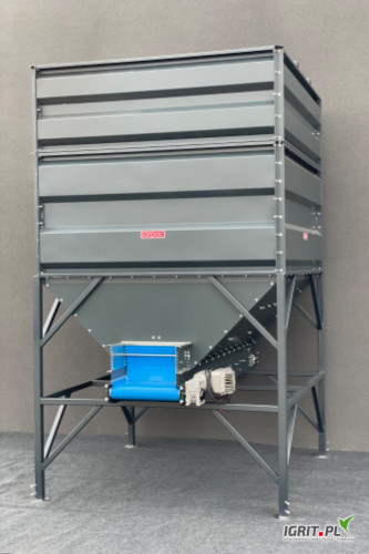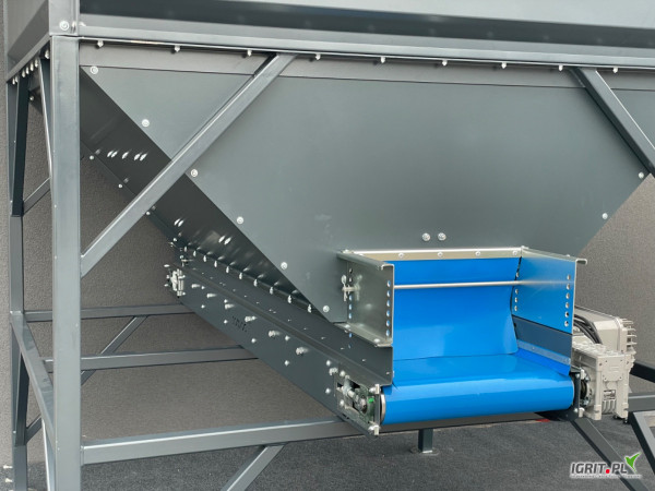 OpisSprzedam zbiornik zasypowy Sorpac (pojemność do 8 ton), malowany, regulacja prędkości taśmociągu i regulowana szerokość wylotu towaru, możliwość pracy na dwie strony, kaskada.