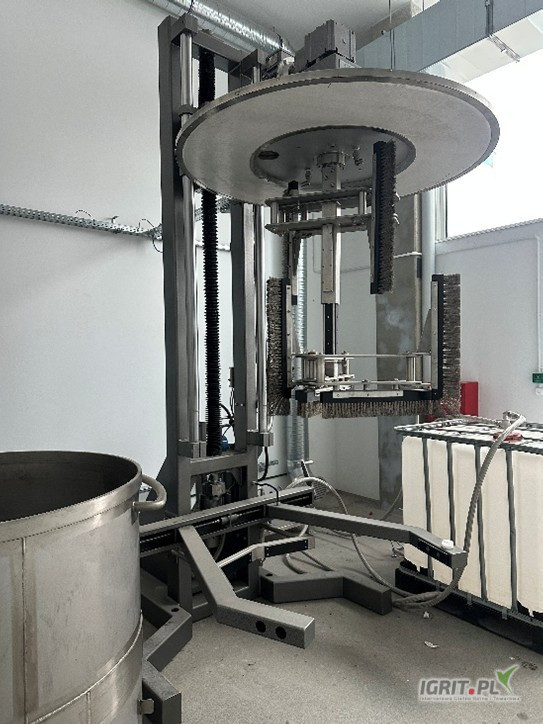 Wyposażone w zestaw szczotek sciągających produkt ze ścian bocznych oraz z dna kadzi.