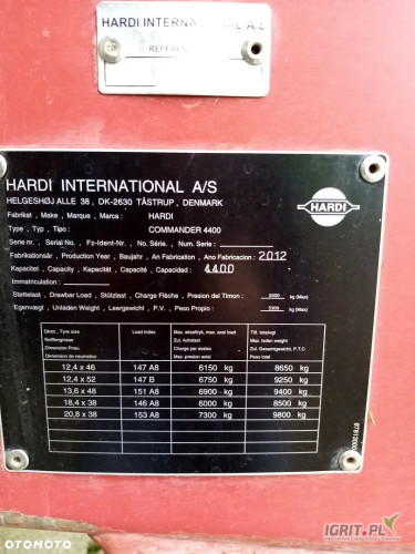 OPRYSKIWACZ PRZYCZEPIANY HARDI COMMANDER 4 400L. rok produkcji 2012. Belka robocza 24m nr 104 194. Trakcja skrętu. Komputer. Stan techniczny: dobry