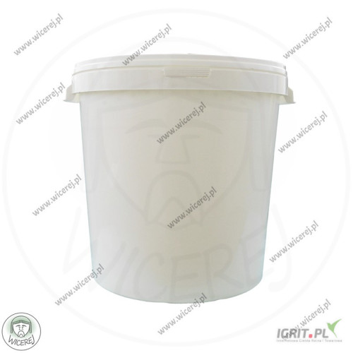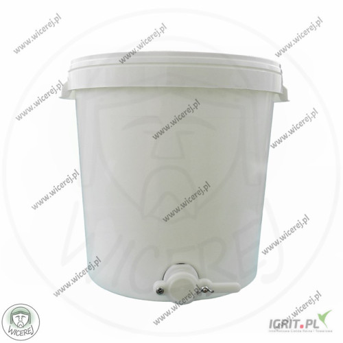 Nasz sklep pszczelarski online wicerej.pl Na każdy zakupiony towar udzielamy gwarancji. Wystawiamy faktury VAT. Nasz sprzęt można zamawiać na dotacje UE ARiMR Posiadamy w ofercie nowy odstojnik do miodu 33L plastikowy z pokrywą i zaworem plastikowym (Pojemność 33L to maksymalna pojemność wsadu pod pokrywę) (średnica zaworu fi 48mm). Odstojnik wykonany jest z polipropylenu PP – z materiału dopuszczonego do kontaktu z żywnością. Odstojnik do miodu przeznaczony do wielokrotnego użytku. Odstojnik jest więc Wykonany z tworzywa sztucznego z przeznaczeniem spożywczym (plastik). Składa się z wiadra, zaworu oraz pokrywki, posiada boczne uchwyty, dzięki czemu przenoszenie pojemnika jest wygodne i łatwe. Odstojnik Przeznaczony jest do produktów spożywczych i chemicznych Dodatkową zaletą pojemnika 33L jest jego wytrzymałość – doskonale sprawdzi się przy ciężkich wsadach. Zamknięcie zabezpieczone jednorazową plombą. Cena dotyczy kompletu wiadra z pokrywką i zaworem. Zalety: • Odstojnik wykonany z materiału łatwego do utrzymania w czystości. • Szerokie zastosowanie spożywcze, pojemnik przeznaczony do kontaktu z żywnością, posiada stosowne oznakowanie. • Może służyć do napełniania na ciepło, zimno oraz zamrażania. Pojemność całkowita – 33L (maksymalna ilość wsadu pod pokrywkę) Maksymalne obciążenie – 70kg Średnica zewnętrzna – 38cm Średnica wewnętrzna – 35,7cm Średnica spodu – 32,2cm Wysokość bez pokrywki – 37cm Średnica zaworu – 48mm Kolor wiadra, pokrywy i zaworu – biały Istnieje możliwość wysyłki na wskazany adres dowolnej ilości Zapraszam do naszego sklepu internetowego wicerej.pl Nasza oferta obejmuje: miodarki do wirowania miodu, topiarki do wosku, stoły do odsklepiania ramek, odstojniki do miodu, wanienki do odsklepiania, bluzy pszczelarskie, kombinezony, rękawice, kapelusze pszczelarskie, dłuta, podkurzacze, dyfuzory, podkarmiaczki, zasuwki, poławiacze pyłku, widelce do odsklepiania, sita do miodu, kraty odgrodowe, druty pszczelarskie, radełko do węzy, wtapiarki do węzy, skrobaki do ramek, łopatki do miodu, kraty odgrodowe do uli, zmiotki do omiatania pszczół i wiele innych. Wysyłka sprzętu na terenie całego kraju. Zdjęcia zostały wykonane przez firmę FHU WICEREJ, stanowią jej własność, opatrzone są znakami wodnymi oraz logiem firmy. Zdjęcia przedstawiają realny wygląd produktu. Produkty innych sprzedawców z naszymi zdjęciami, na których brak jest naszych znaków wodnych i logo firmy wicerej, oznaczają nielegalną kopię naszych zdjęć przez innych sprzedawców.
