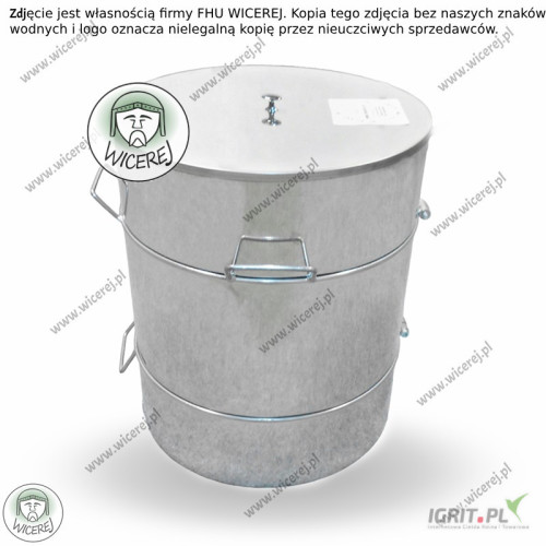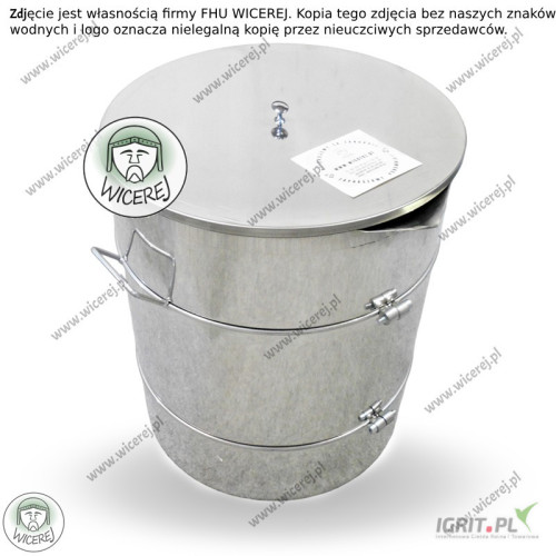 Nasz sklep pszczelarski online wicerej.pl Nasz sprzęt można kupować na dotację ARiMR Pojemnik, odstojnik do miodu, wykonany jest ze stali nierdzewnej. Pojemność 60 litrów (jest to pojemność maksymalna wsadu pod pokrywkę). Pojemnik, odstojnik na miód wyposażony jest w zamykaną nierdzewną pokrywę oraz uchwyty do przenoszenia i wygodnego zlewania miodu. Pojemnik przeznaczony jest zarówno do przechowywania miodu, jak i podkładania pod miodarkę. Dzięki profilowanemu stożkowi w górnej części ścianki, można w łatwy sposób zlać miód do większych oraz mniejszych naczyń, a nawet słoików. Budowa odstojnika: - Zbiornik (Baniak) - stal nierdzewna AISI 430 - Profilowany stożek do rozlewu -Pokrywa - stal nierdzewna AISI 430 -Uchwyty - stal powlekana proszkowo Pojemnik/odstojnik nierdzewny wykorzystywany jest do przechowywania miodu, podstawienia pod miodarkę, sprawnego przelewania miodu do mniejszych bądź większych naczyń. Wymiary odstojnika na miód o pojemności 60 litrów ze stali nierdzewnej z pokrywą: -Pojemność wsadu – 60 litrów (jest to maksymalna pojemność wsadu pod pokrywkę) -Średnica odstojnika – 40cm -Wysokość – 48cmm -Waga - 6,5 kg -Materiał stal nierdzewna AISI 430 Istnieje możliwość wysyłki na wskazany adres. Zapraszam do naszego sklepu internetowego wicerej.pl W razie dodatkowych pytań proszę o kontakt Nasza oferta obejmuje: miodarki do wirowania miodu, topiarki do wosku, stoły do odsklepiania ramek, odstojniki do miodu, wanienki do odsklepiania, bluzy pszczelarskie, kombinezony, rękawice, kapelusze pszczelarskie, dłuta, podkurzacze, dyfuzory, podkarmiaczki, zasuwki, poławiacze pyłku, widelce do odsklepiania, sita do miodu, kraty odgrodowe, druty pszczelarskie, radełko do węzy, wtapiarki do węzy, skrobaki do ramek, łopatki do miodu, kraty odgrodowe do uli, zmiotki do omiatania pszczół i wiele innych. Wysyłka sprzętu na terenie całego kraju. Zdjęcia zostały wykonane przez firmę FHU WICEREJ, stanowią jej własność, opatrzone są znakami wodnymi oraz logiem firmy. Zdjęcia przedstawiają realny wygląd produktu. Produkty innych sprzedawców z naszymi zdjęciami, na których brak jest naszych znaków wodnych i logo firmy wicerej, oznaczają nielegalną kopię naszych zdjęć przez innych sprzedawców.