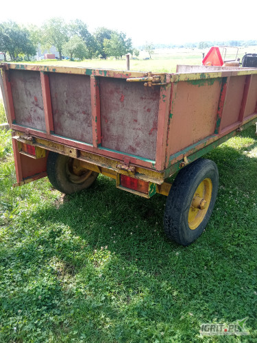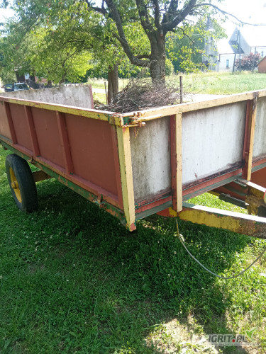 Sprzedam przyczepkę do ciągnika, cała metalowa, burty otwierane na 3 strony o wymiarach szer.1,5 m x dł 3,0 m, koła 16 ", posiada oświetlenie.