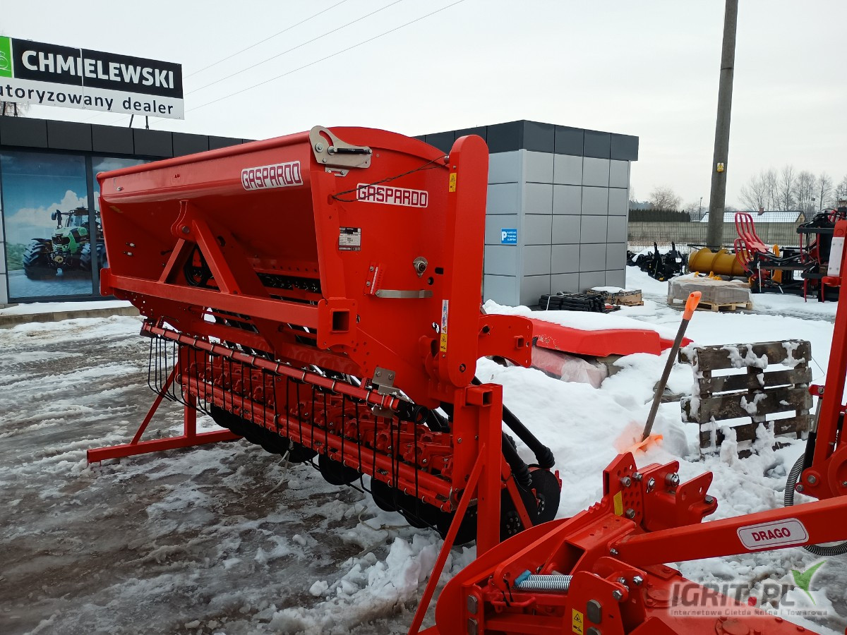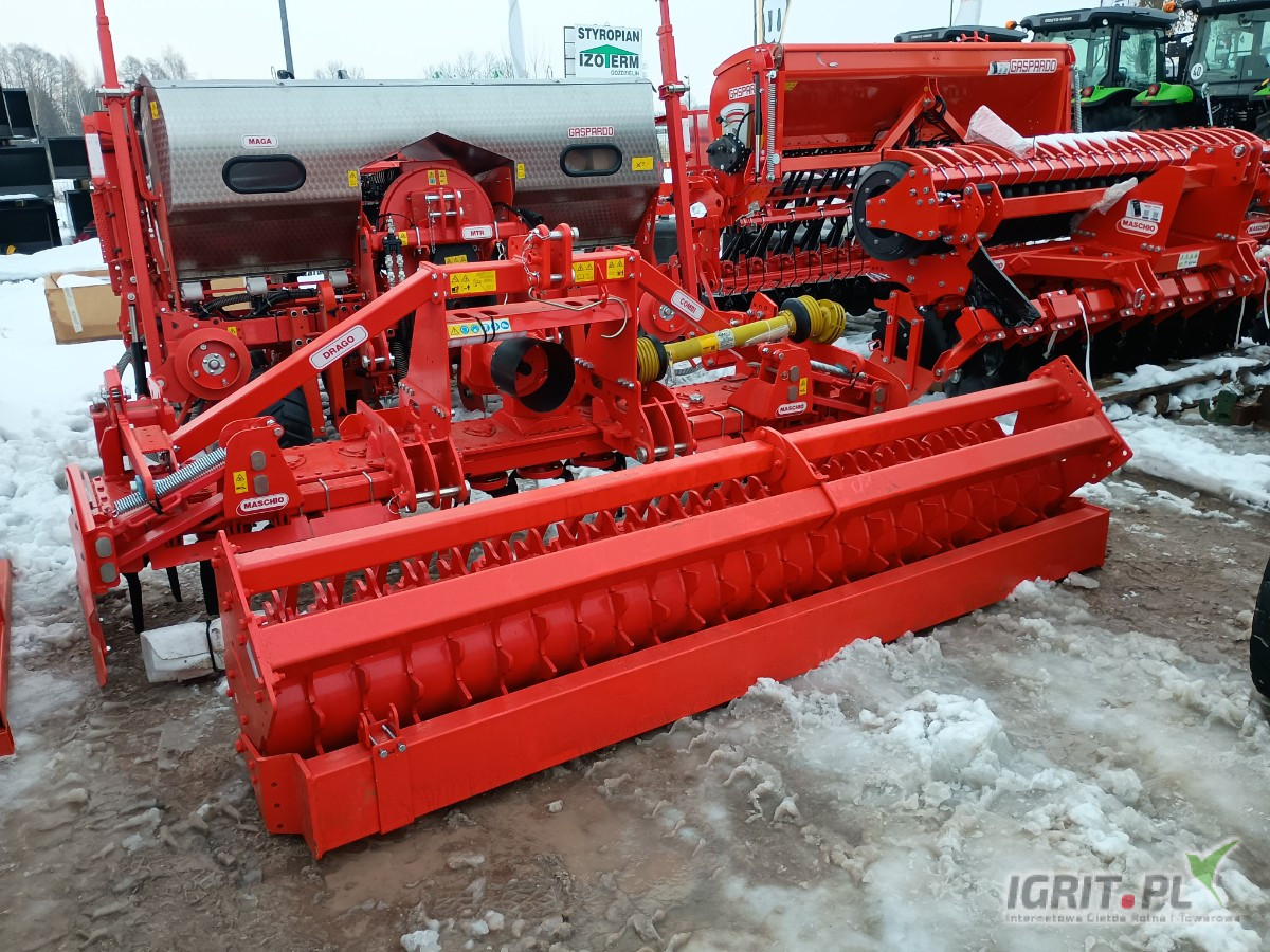 Zestaw Uprawowo Siewny Gaspardo DAMA 3000 DOUBLE DISC BRONA AKTYWNA – 24R * Autoryzowany Dealer maszyn Maschio Gaspardo Polska * Zestaw w Promocyjnej cenie przed sezon 2026 * Zapewniamy Transport do klienta Szkolenie oraz uruchomienie maszyny w cenie zakupu * Zestaw sieje precyzyjnie : * Zboża: pszenica, jęczmień, żyto, owies. * Nasiona roślin oleistych: rzepak. * Nasiona strączkowych: groch, bobik. * Mieszanki traw: w zależności od konfiguracji * Kluczowe cechy: * Precyzja: Zapewnia właściwe umieszczenie nasion na odpowiedniej głębokości. * Uniwersalność: Może być stosowana na różnych rodzajach pól i do różnych upraw. * Niskie koszty: Lekka konstrukcja i prostota regulacji zmniejszają koszty użytkowania. * Wydajność: Odpowiednia dla rolników potrzebujących efektywnego sprzętu do pracy w zmiennych warunkach pogodowych. DAMA 3000 DOUBLE DISC TO BRONA AKTYWNA – 24R i Zestaw do uprawy i siewu bezpośredniego (bezorkowa uprawa gleby) Mechaniczna kombinacja uprawowo-siewna. DAMA DC WAŁ PAKER 500 ZESTAW DOSTĘPNY OD RĘKI , TRANSPORT DO KLIENTA W CENIE. - Brona aktywna - 24 redlice Double Disc z kompletem kółek dociskowych gumowych - Skrzynia WOM 540/1000 obr/min - zalecane 1000 obr/min - Koła zębate standardowe: 17-23 - Wanna podwójnie wzmacniana Boczne osłony - Przedłużane punkty zaczepowe Wyjście tylne WOM - Regulacja wału przetyczkami - Przykręcane stalowe bloki PLUS - Dwudzielne kółka wysiewające - Skrzynia z chłodnicą i 3 mimośrodami - Wyłączanie połowy maszyny - Centralna i indywidualna regulacja docisku redlic - Zbiornik ze wskaźnikiem do sprawdzania poziomu nasion - Korytko do próby kręconej - Koła napędowe zręcznym podnoszeniem i zmianą na czas transportu - Oświetlenie oraztablice ostrzegawcze Brona zagarniająca multicontrol - Pojemność zbiornika: 600 l - Komputer TSH ze elektronicznym ścieżkowaniem - Znacznik hydrauliczny - Wał Paker: 500 mm lub Wał Gumowy: 600 mm - opcja W ofercie także posiadamy różne siewniki i zestawy Producenta Maschio Gaspardo: DAMA 2500 DOUBLE DISC BRONA AKTYWNA 39 DAMA 3000 DOUBLE DISC BRONA AKTYWNA – 24R 40 DAMA 3000 DOUBLE DISC IENA – 24R 41 DAMA 3000 DOUBLE DISC BRONA AKTYWNA – 24R – ISOTRONIC GENIUS MASTER 42 ALIANTE 3000 DOUBLE DISC BRONA AKTYWNA – 24R 43 ALIANTE 3000 DOUBLE DISC IENA – 24R 44 ALIANTE ISOBUS 3000 DOUBLE DISC BRONA AKTYWNA – 24R 45 ALITALIA ISOBUS 3000 DOUBLE DISC BRONA AKTYWNA- 24R Jesteśmy autoryzowanym Dealerem marki MASCHIO GASPARDO i zapewniamy pełną gwarancję i obsługę serwisową gwarancyjną i pogwarancyjną , uruchamiamy każdą maszynę w Gospodarstwie w celu gwarancji. Posiadamy oryginalne części Maschio Gaspardo. Przyjmujemy zamówienia przedsezonowe indywidualne na każde maszyny marki MASCHIO / szybka realizacja. *REALIZUJEMY Projekty z Funduszy UE ARiMR Możliwość skorzystania z finansowania fabrycznego na maszynę. W ofercie dostępne także inne maszyny Maschio Gaspardo - szybka realizacja zapraszam .6.0.9.9.9.0.3.5.1. Dealer maszyn pełnej Gamy Maschio Gaspardo Poland.6.0.9.9.9.0.3.5.1.