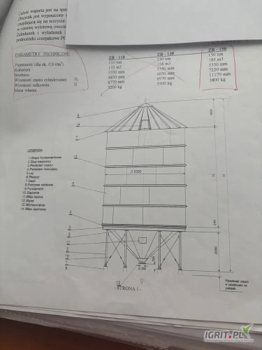 Dwa silosy na zboże, każdy po 150 ton. Dodatkowo wialnia przyjęciowa . Do własnego demontażu i transportu. Cena podana jest za sztukę.