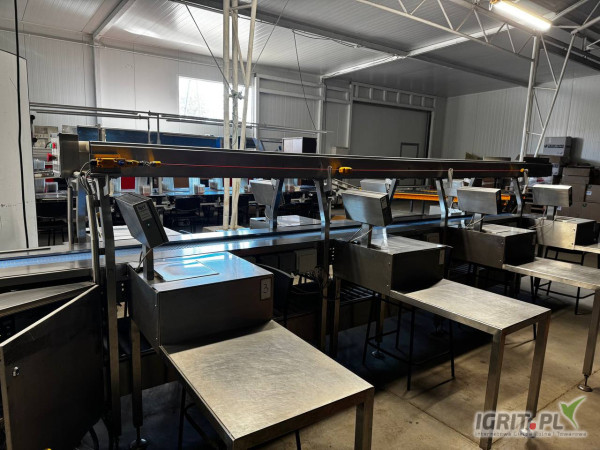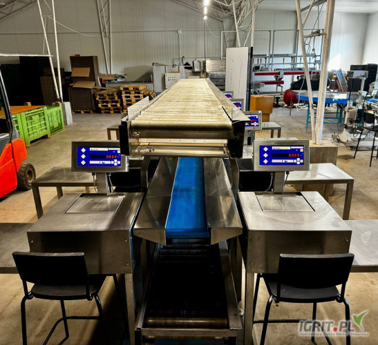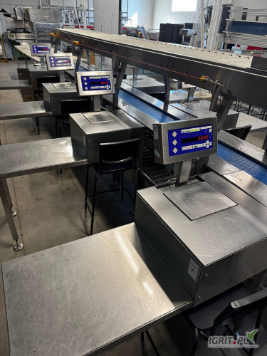 Sprzedam sortownik do owoców. Linia posiada 8 stanowisk do ważenia jest wyposażona w system wag który umożliwia ustawianie zakresu wag sygnalizuje poprawność warzenia kolorem czerwony źle zielony poprawnie oraz pokazuje na bieżąco postępy w pracy wszystkich pracowników. Po zakończeniu pracy można wydrukować dokładne dane które pokazują każdego pracownika oraz zakresy wagi produktów. Linie można łączyć z innymi maszynami takimi jak etykieciarka czy maszyna do silowania. Posiadam również film z pracy maszyny. Więcej informacji udzielę telefonicznie.