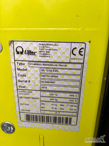 OpisSprzedam nowe paleciak elektryczne z masztami 3,5 i 3,8 metra z udźwigiem 1200 kg.