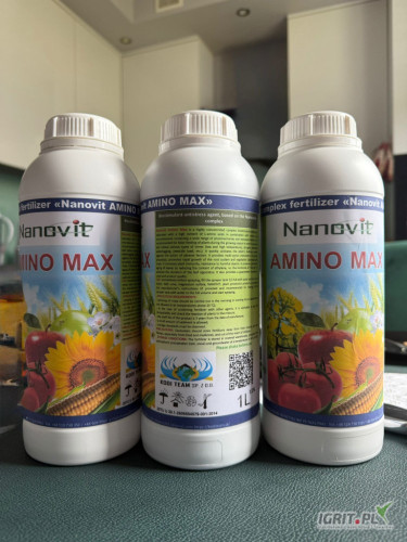 NANOVIT Amino Max Wysoce skoncentrowany, kompleksowy biostymulator antystresowy nasycony wysoką zawartością Laminokwasów w połączeniu z makro- i mikroelementami oraz szeroką gamą fitohormonów i monosa...