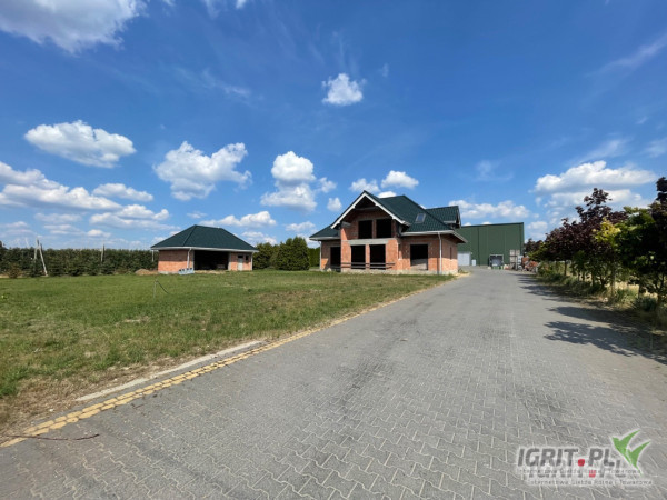Budynki mieszkalne: 1) dom parterowy (65 m²), 2) budynek socjalny dla 24 pracowników oraz 3) dom w stanie surowym z garażem. Ponadto: podwórko: 80 arów, w tym ok. 2500 m² utwardzone kostką brukową; garaże na maszyny.