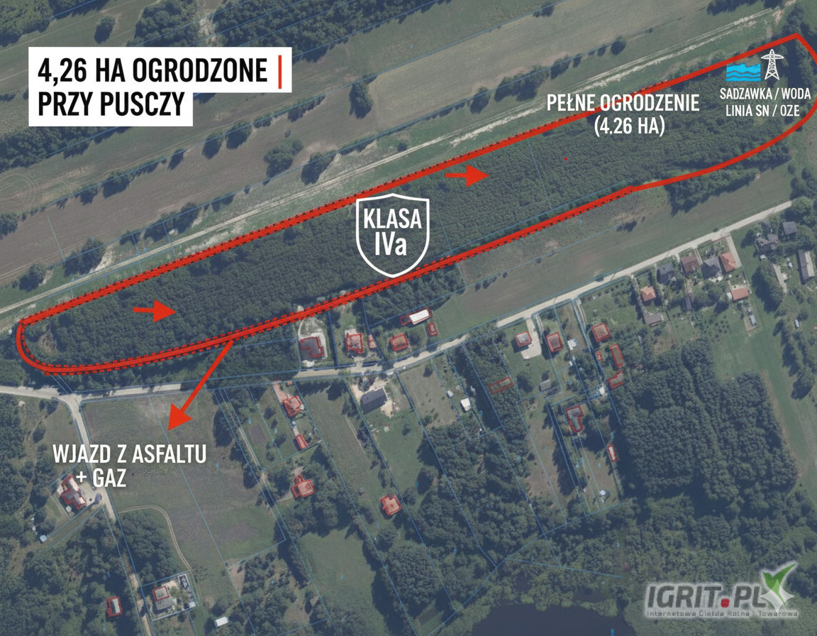 4,26 ha OGRODZONE | Przewaga KLASY IV (IVa/IVb) | GAZ | Sadzawka
