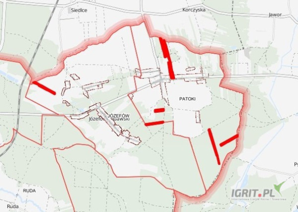 * Patoki 15 działek o nr 175, 176, 192, 193, 280, 289, 319, 320, 518, 527, 1056, 1057, 1058, 1192, 1193