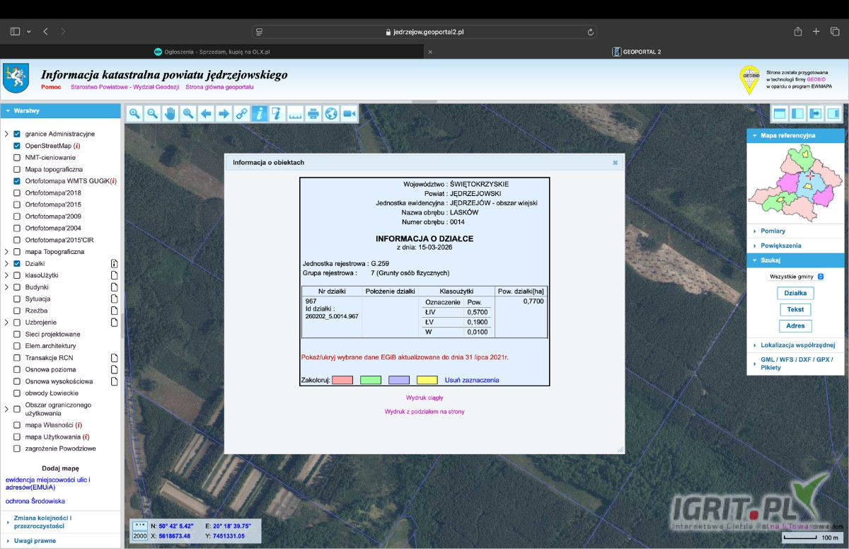 Powierzchnia działki 0,77 ha.
