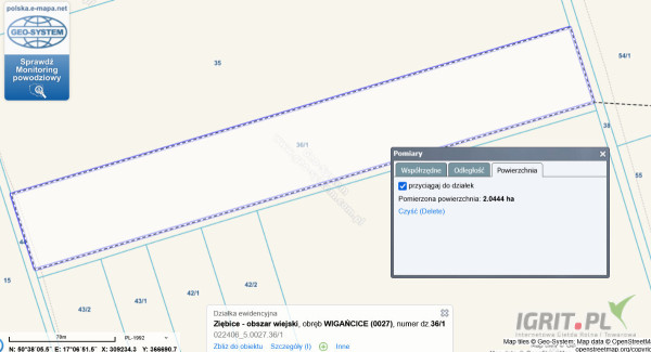 Lokalizacja: Ziębice, obręb Wigańcice (0027), działka nr 36/1